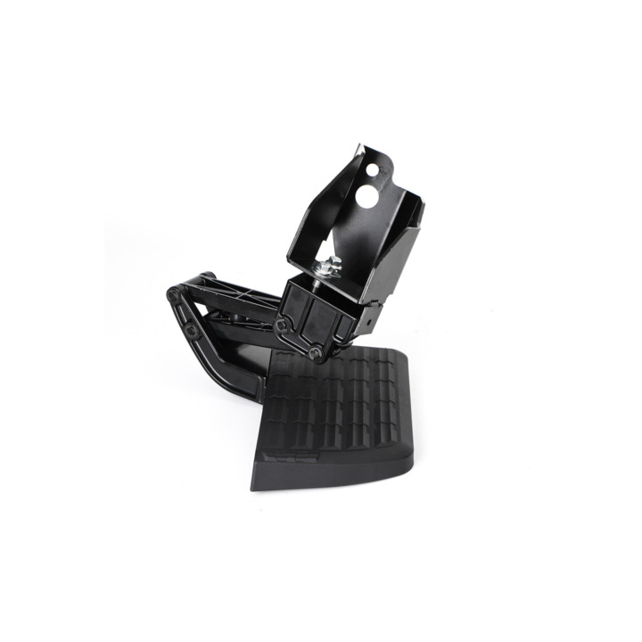 Este estribo es plegable. Si no quiere agacharse, simplemente levántelo con el pie.