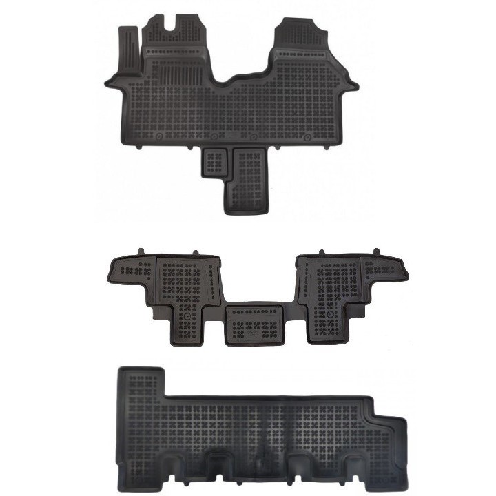1 x alfombrilla para conductor + pasajeros (2/3 plazas delanteras) - 1 x alfombrilla para la 1ª fila de pasajeros - 1 x alfombrilla para la 2ª fila de pasajeros