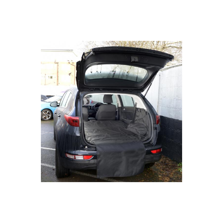suelo, la parte trasera del asiento trasero y los laterales del maletero, ofreciendo una alta protección lateral, a diferencia de las alfombrillas planas para coche. Se incluye una solapa de parachoques integrada para una protección adicional contra los perros que saltan o cuando se colocan artículos grandes en la zona de carga. Para una mayor versatilidad, los asientos traseros se pueden bajar sin quitar el revestimiento, ideal para ocasiones en las que se tiene que transportar una carga larga. Esta protección se puede limpiar, lavar o lavar a máquina. Tenga en cuenta que las imágenes mostradas son genéricas; cada revestimiento es diferente, según su vehículo.