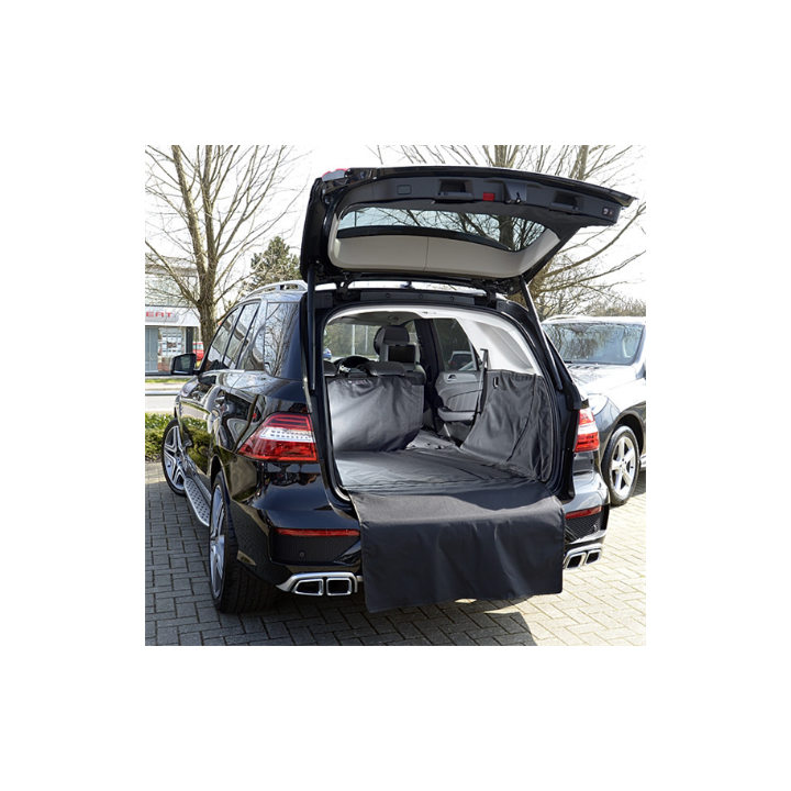 - La solapa integrada protege el parachoques cuando los perros saltan al maletero