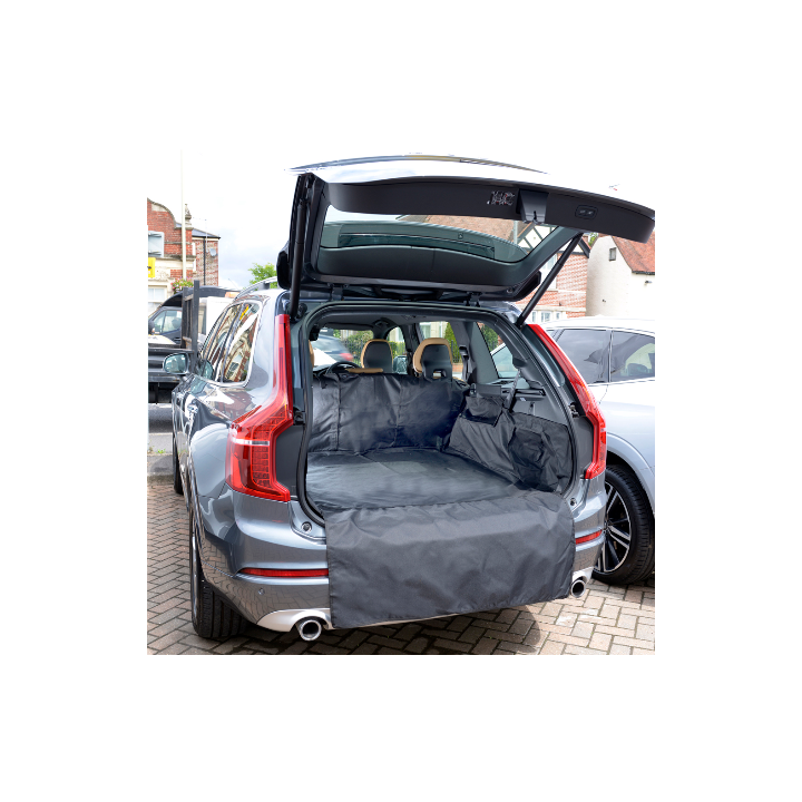 suelo, la parte trasera del asiento trasero y los laterales del maletero, ofreciendo una alta protección lateral, a diferencia de las alfombrillas planas para coche. Se incluye una solapa de parachoques integrada para una protección adicional contra los perros que saltan o cuando se colocan artículos grandes en la zona de carga. Para una mayor versatilidad, los asientos traseros se pueden abatir sin quitar el revestimiento, ideal para ocasiones en las que se tiene que transportar una carga larga. Esta protección se puede limpiar, lavar o lavar a máquina. Tenga en cuenta que las imágenes mostradas son imágenes genéricas: cada revestimiento es diferente, según su vehículo.