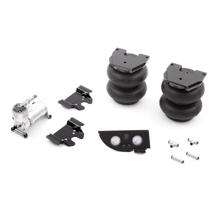 Compuesto por: amortiguadores para el eje delantero RouteComfort Evo y resorte neumático auxiliar Soft Touch de 2 circuitos con fuelle de 8" en el eje trasero.