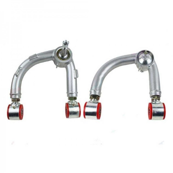 Estos robustos brazos de control superiores corregirán el camber y el caster después de la instalación de una elevación. También tienen la ventaja de dar holgura a la bobina, eliminando el problema de la fijación de la bobina al brazo que causa desgaste durante el desplazamiento.