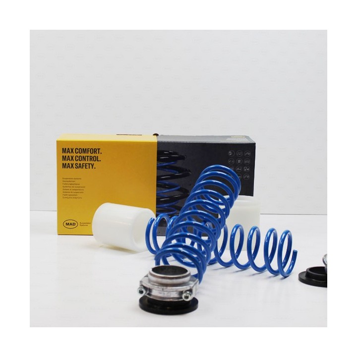 El sistema de suspensión de MAD está ahí para compensar los diferentes pesos de carga y para apoyar y ayudar al sistema de muelles original del coche para que mantenga la seguridad y el confort incluso con la carga máxima permitida. Las suspensiones nunca aumentan el peso de carga máximo permitido para el coche.