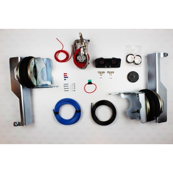 1 juego de muelles neumáticos adicionales para el eje trasero, para reforzar los muelles de ballesta estándar. La suspensión neumática se instala entre el chasis y el eje .