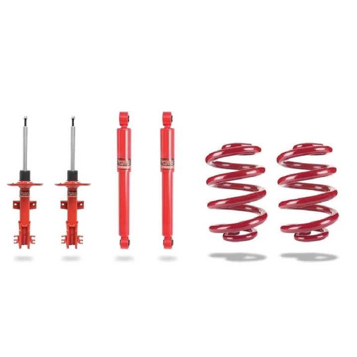 Este kit incluye nuestros excelentes amortiguadores Pedders SportsRyder en todas las ruedas y muelles helicoidales traseros elevados.