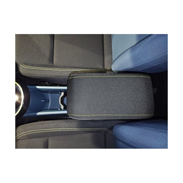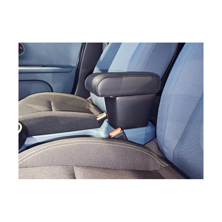 A diferencia del modelo estándar que cuenta con un compartimento de almacenamiento de plástico, este modelo PREMIUM está equipado con un compartimento de almacenamiento completamente cubierto de símil cuero por fuera y de fieltro negro suave por dentro. El apoya-brazos se integra así perfectamente en el coche y cuenta con un acabado de alta gama.