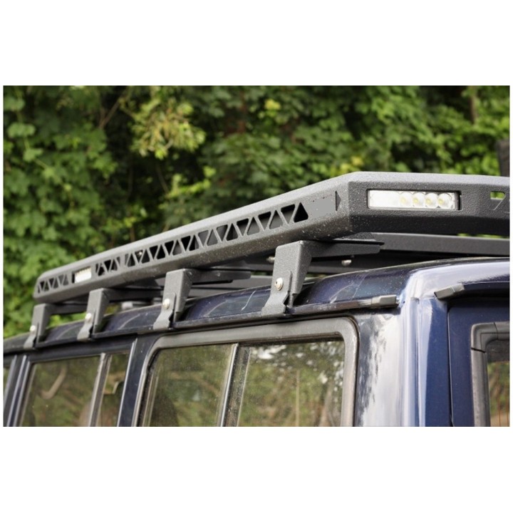 La baca de techo NISSAN PATROL Y61 es una estructura de acero tridimensional, galvanizada, con recubrimiento en polvo negro y acabado exterior con pintura estructural.