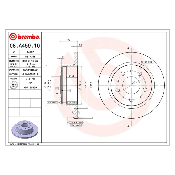 Disco de freno trasero Fiat Ducato tipo 250/251 20Q BREMBO REF 51740250