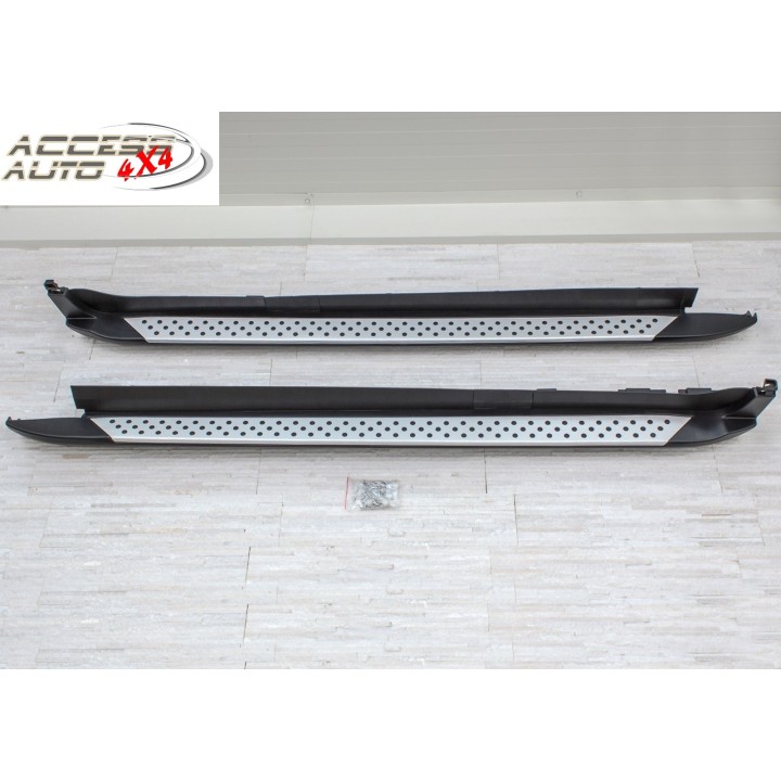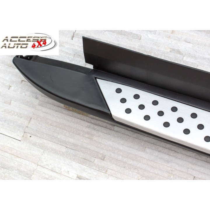 Las diferentes ventajas: Las estriberas facilitan la entrada y salida, aumentando así el confort. También proporcionan protección contra arañazos o golpes de puertas. El valor de reventa del vehículo aumenta Diseño exclusivo e individual Apariencia deportiva y dinámica Alta calidad: aluminio de alta calidad Aerodinámica perfectamente adaptada Capacidad de carga por lado 160 kg Fácil carga de las barras de techo No requiere perforación ni soldadura