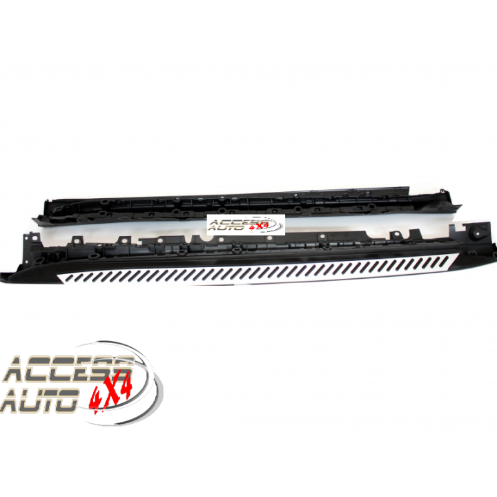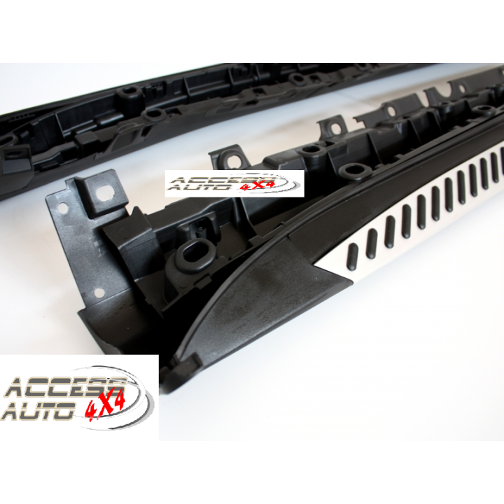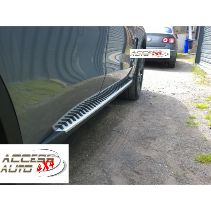 Las diferentes ventajas: Los estribos facilitan la entrada y salida y aumentan así el confort. También proporcionan protección contra arañazos o golpes de puertas. El valor de reventa del vehículo aumenta Diseño exclusivo e individual Apariencia deportiva y dinámica Calidad superior: aluminio de alta calidad Aerodinámica perfectamente adaptada Capacidad de carga por lado 100 kg Fácil carga de las barras de techo No se requiere perforación ni soldadura