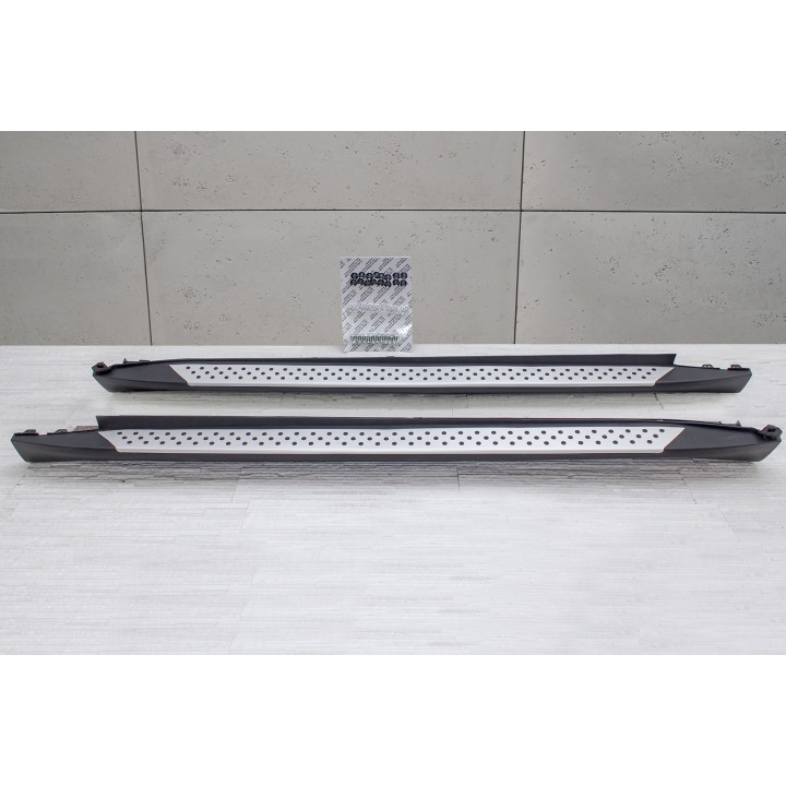 Las diferentes ventajas: Las estriberas facilitan la entrada y salida, aumentando así el confort. También proporcionan protección contra arañazos o golpes de puertas. El valor de reventa del vehículo aumenta Diseño exclusivo e individual Apariencia deportiva y dinámica Alta calidad: aluminio de alta calidad Aerodinámica perfectamente adaptada Capacidad de carga por lado 160 kg Fácil carga de las barras de techo No requiere perforación ni soldadura