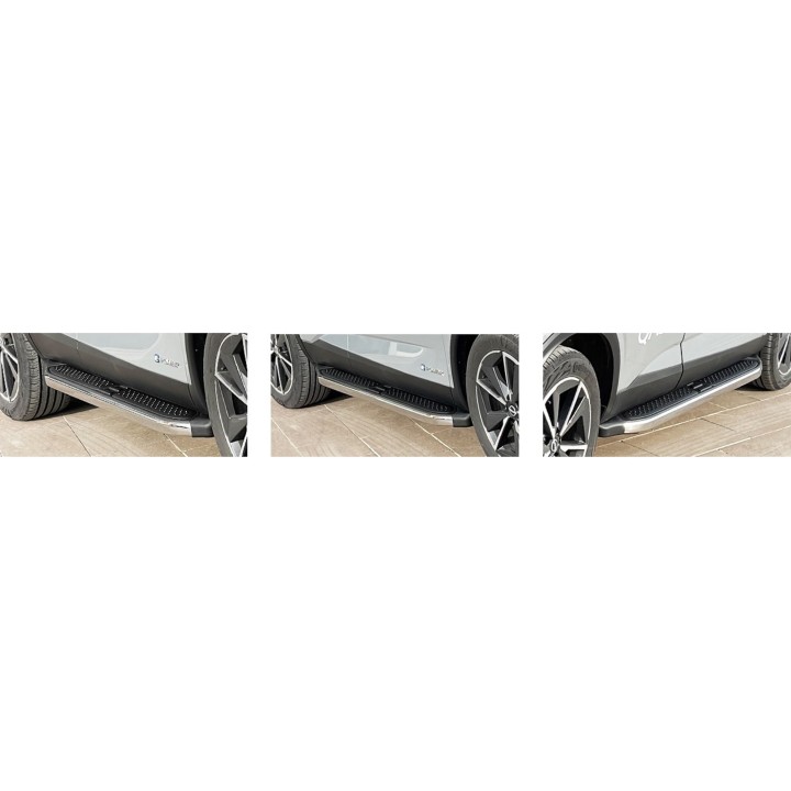 Los estribos son placas anchas de aluminio con una superficie perfilada. Esto garantiza la máxima resistencia al deslizamiento y le ayuda a subir a su vehículo de forma segura.