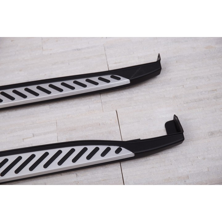 Las diferentes ventajas: Los estribos facilitan la entrada y salida del vehículo aumentando así el confort. También proporcionan protección contra arañazos o golpes de puertas. El valor de reventa del vehículo aumenta. Diseño exclusivo e individual. Apariencia deportiva y dinámica. Top calidad: aluminio de alta calidad. Aerodinámica perfectamente adaptada. Capacidad de carga por lado 160 kg. Carga fácil de las barras de techo. Sin perforaciones ni soldaduras necesarias.