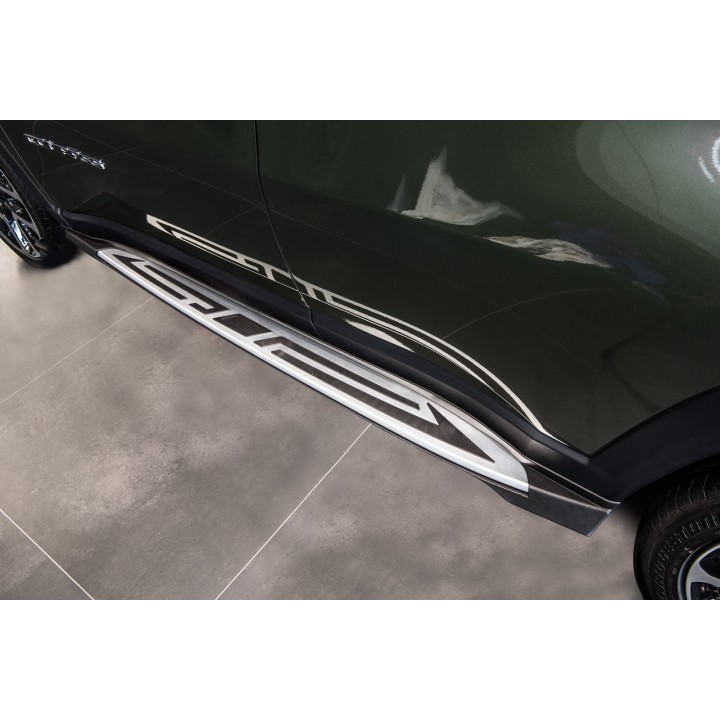 Las diferentes ventajas: Los estribos facilitan la entrada y salida del vehículo aumentando así el confort. También proporcionan protección contra arañazos o golpes de puertas. El valor de reventa del vehículo aumenta. Diseño exclusivo e individual. Apariencia deportiva y dinámica. Top calidad: aluminio de alta calidad. Aerodinámica perfectamente adaptada. Capacidad de carga por lado 160 kg. Carga fácil de las barras de techo. Sin perforaciones ni soldaduras necesarias.