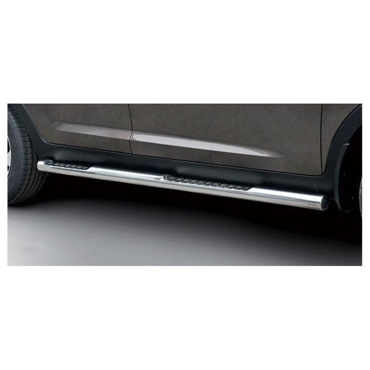 Los estribos laterales de acero inoxidable están hechos de barras de 60 mm de diámetro y 2 mm de espesor. La instalación se realiza de forma no invasiva, utilizando los puntos de montaje de fábrica, para que el coche conserve su construcción original.
