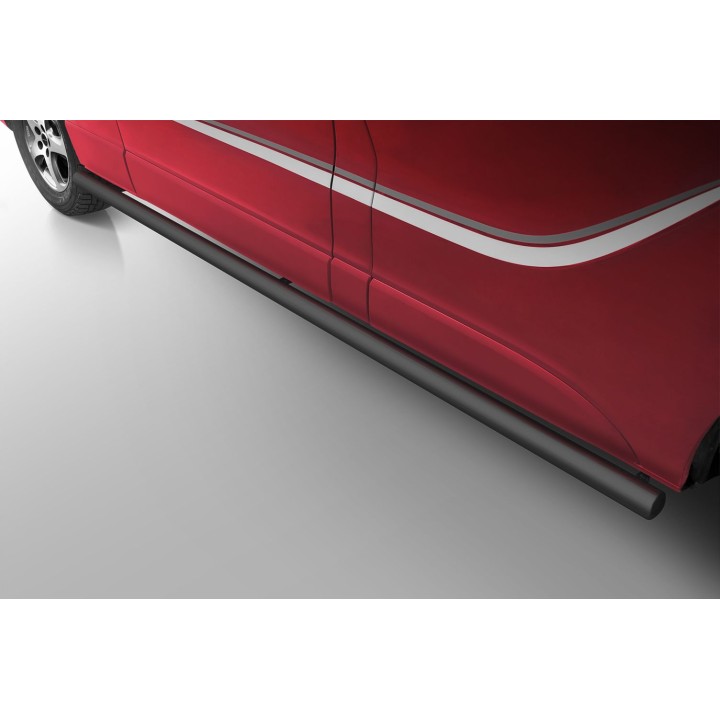 Los estribos laterales de acero inoxidable están compuestos por barras de 70 mm de diámetro y 2 mm de espesor. La instalación se realiza de forma no invasiva, utilizando los puntos de montaje de fábrica, de modo que el coche conserva su construcción original.