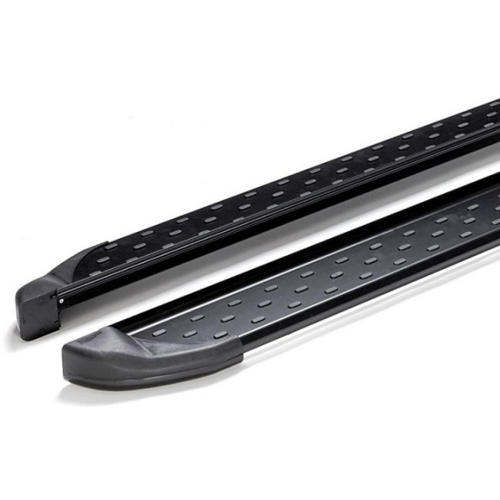 Los estribos son placas anchas de aluminio con una superficie perfilada. Esto garantiza la máxima resistencia al deslizamiento y le ayuda a subir a su vehículo de forma segura.