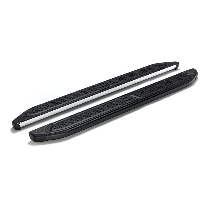Las estriberas son placas anchas de aluminio con una superficie perfilada. Esto garantiza la máxima resistencia al deslizamiento y le ayuda a subir a su vehículo de forma segura.