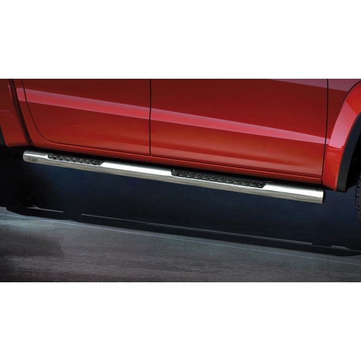 Los estribos laterales de acero inoxidable están compuestos por barras de 76 mm de diámetro y 2 mm de espesor. La instalación se realiza de forma no invasiva, utilizando puntos de montaje de fábrica, de modo que el coche conserva su construcción original.