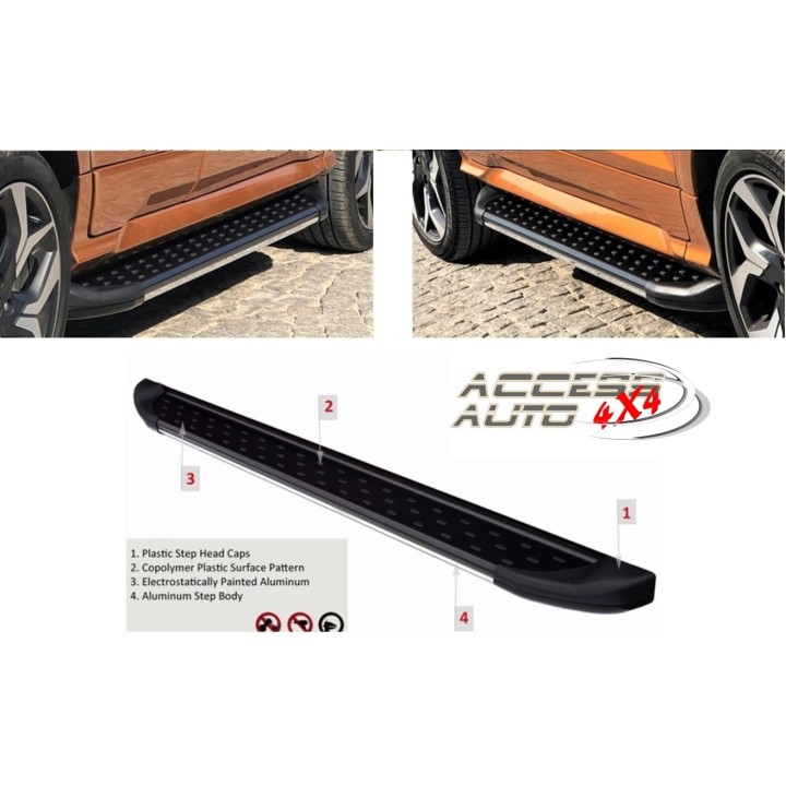Los estribos son amplias placas de aluminio con una superficie perfilada. Esto garantiza la máxima resistencia al deslizamiento y le ayuda a subir a su vehículo de forma segura.