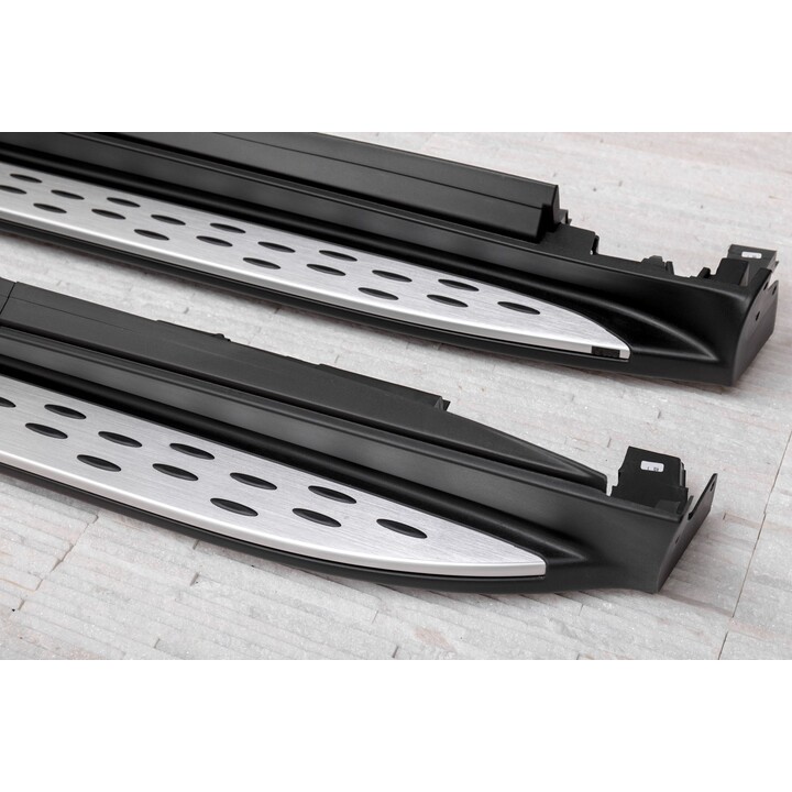 Las diferentes ventajas: Los estribos facilitan la entrada y salida y así aumentan la comodidad. También proporcionan protección contra arañazos o golpes de puertas. El valor de reventa del vehículo aumenta Diseño exclusivo e individual Apariencia deportiva y dinámica Alta calidad: aluminio de alta calidad Aerodinámica perfectamente adaptada Capacidad de carga por lado 160 kg Fácil carga de las barras de techo No requiere perforación ni soldadura