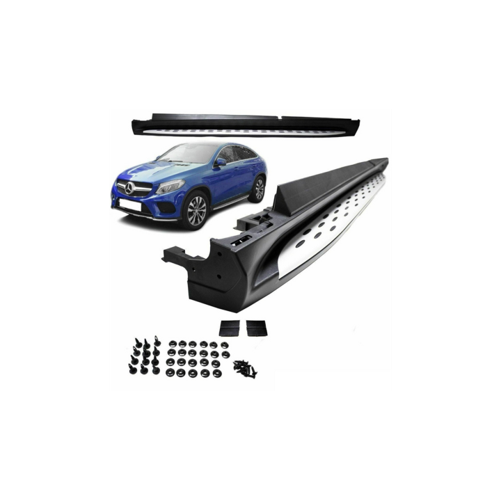 Mejore la apariencia y funcionalidad de su Mercedes GLE Coupé (C292) 2015-2019 con estos estribos de alta calidad. Disponibles en una gama de acabados, incluyendo Mate, Cromo y aluminio, estas características están diseñadas para complementar la estética elegante de su SUV.