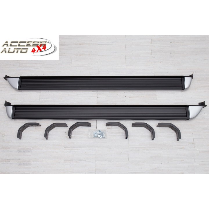 Las diferentes ventajas: Los estribos facilitan la entrada y salida y aumentan así la comodidad. También proporcionan protección contra arañazos o golpes de puertas. El valor de reventa del vehículo aumenta Diseño exclusivo e individual Apariencia deportiva y dinámica Calidad superior: aluminio de alta calidad Aerodinámica perfectamente adaptada Capacidad de carga por lado 160 kg Fácil carga de las barras de techo No se requiere perforación ni soldadura