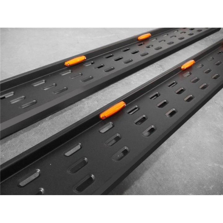 Las diferentes ventajas: Los estribos facilitan la entrada y salida, aumentando así el confort. También proporcionan protección contra arañazos o golpes de puertas. El valor de reventa del vehículo aumenta Diseño exclusivo e individual Apariencia deportiva y dinámica Calidad superior: aluminio de alta calidad Aerodinámica perfectamente adaptada Capacidad de carga por lado