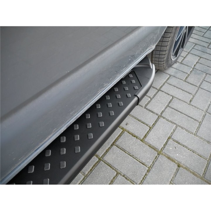 Las diferentes ventajas: Los estribos facilitan la entrada y salida, aumentando así el confort. También proporcionan protección contra arañazos o golpes de puertas. El valor de reventa del vehículo aumenta Diseño exclusivo e individual Apariencia deportiva y dinámica Calidad superior: aluminio de alta calidad Aerodinámica perfectamente adaptada Capacidad de carga por lado 150 kg Fácil carga de las barras de techo No se necesita taladrar ni soldar