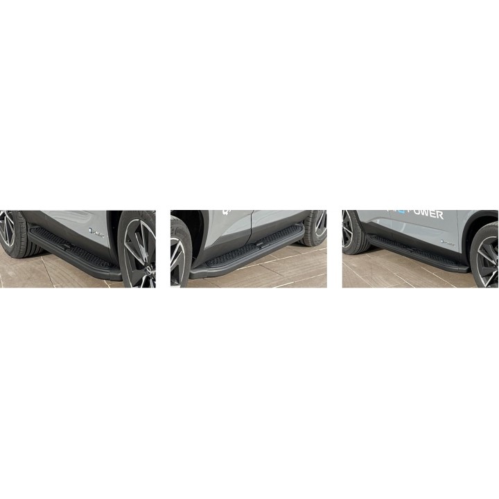 Los estribos son placas anchas de aluminio con una superficie perfilada. Esto garantiza la máxima resistencia al deslizamiento y le ayuda a subir a su vehículo de forma segura.