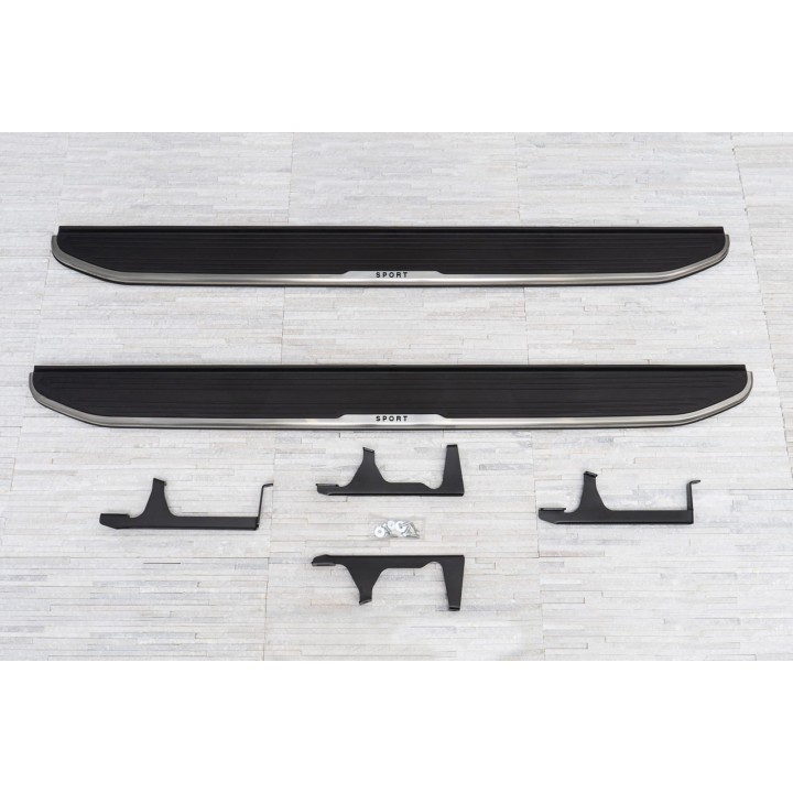 Las diferentes ventajas: Las estriberas facilitan la entrada y salida y así aumentan el confort. También proporcionan protección contra arañazos o golpes de puerta. El valor de reventa del vehículo aumenta Diseño exclusivo e individual Apariencia deportiva y dinámica Alta calidad: aluminio de alta calidad Aerodinámica perfectamente adaptada Capacidad de carga por lado 160 kg Fácil carga de las barras de techo No requiere perforación ni soldadura