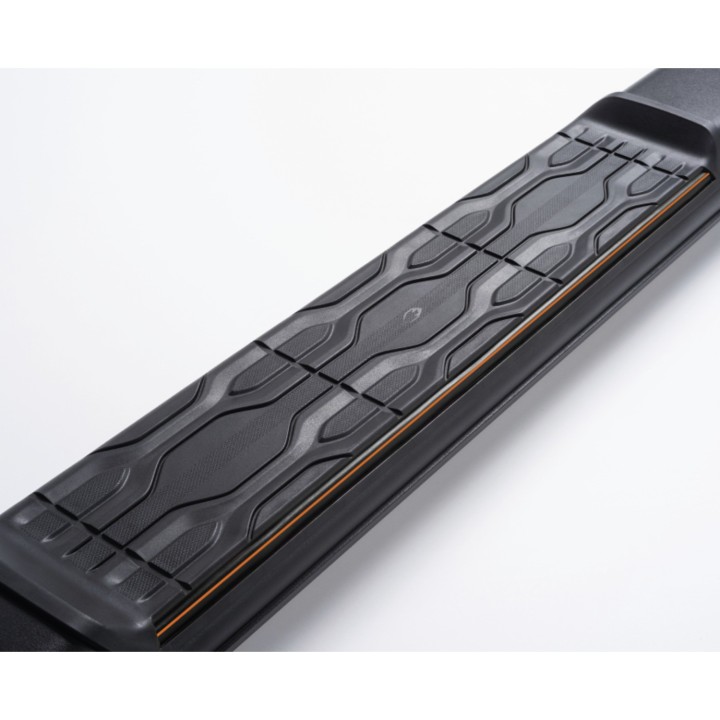 Las diferentes ventajas: Las estriberas facilitan la entrada y salida y así aumentan el confort. También proporcionan protección contra arañazos o golpes de puertas. El valor de reventa del vehículo aumenta Diseño exclusivo e individual Apariencia deportiva y dinámica Calidad superior: aluminio de alta calidad Aerodinámica perfectamente adaptada Capacidad de carga por lado 150 kg Fácil carga de las barras de techo No requiere perforación ni soldadura