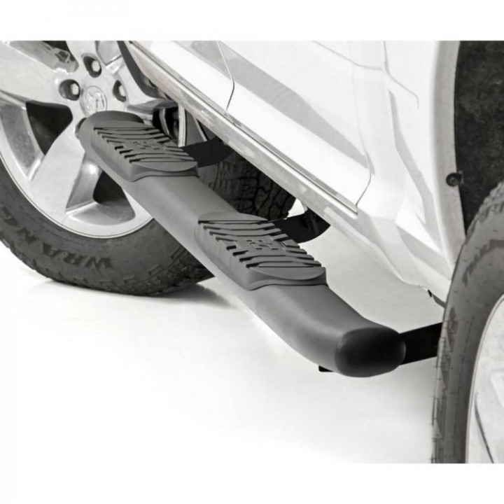 Acceda más fácilmente a su cabina gracias al aspecto clásico OEM de estos estribos ovalados Nerf de Rough Country.