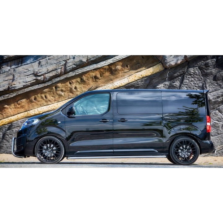 Los estribos laterales de acero inoxidable están formados por barras de 60 mm de diámetro y 2 mm de espesor. La instalación se realiza de forma no invasiva, utilizando los puntos de montaje de fábrica, para que el coche conserve su construcción original.
