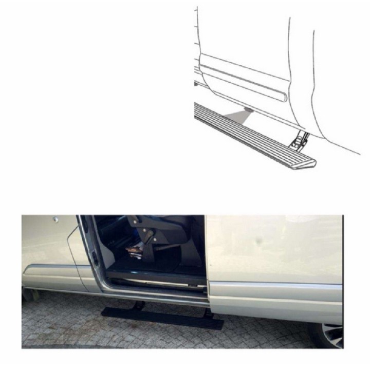 Este sistema de estribo eléctrico está diseñado para mejorar la accesibilidad de los pasajeros que entran y salen de la Mercedes Sprinter