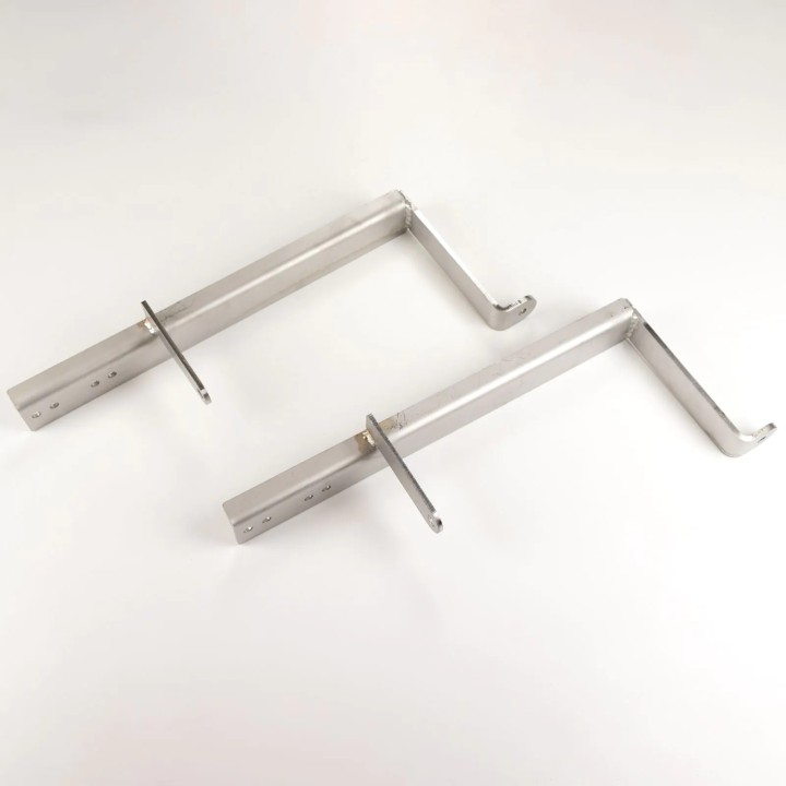 Compuesto por: 2 piezas de estribos de aluminio (anodizado negro), soporte de acero inoxidable, instrucciones de instalación ilustradas
