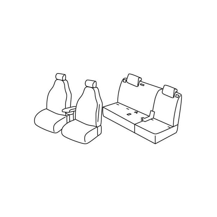 juego de fundas de tela a medida delanteras (2 asientos delanteros + reposabrazos + 2 reposacabezas) + (asiento trasero: asiento + respaldo + reposacabezas)