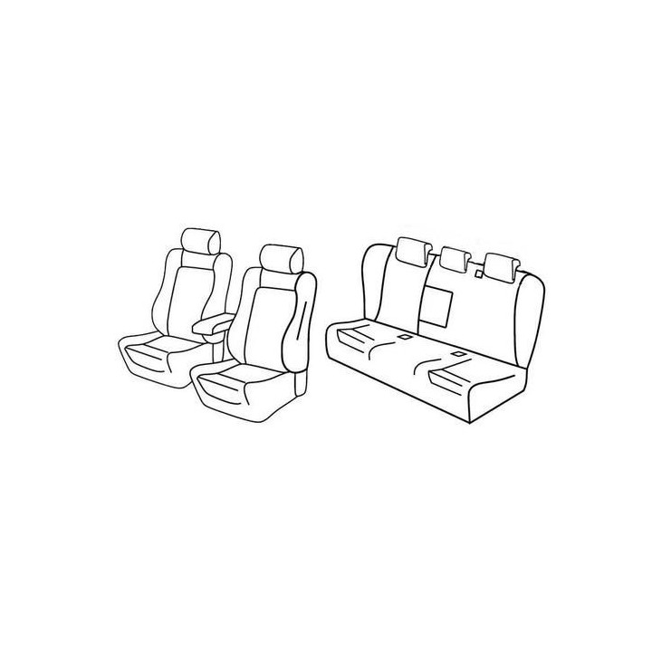 juego de fundas de tela a medida delanteras (2 asientos delanteros + reposabrazos + 2 reposacabezas) + (asiento trasero: asiento + respaldo + reposacabezas):