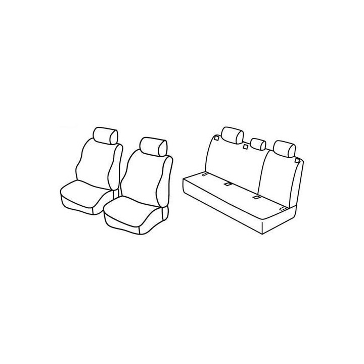 juego de fundas de tela a medida delanteras (2 asientos delanteros + reposabrazos + 2 reposacabezas) + (banqueta trasera: asiento + respaldo + reposacabezas):