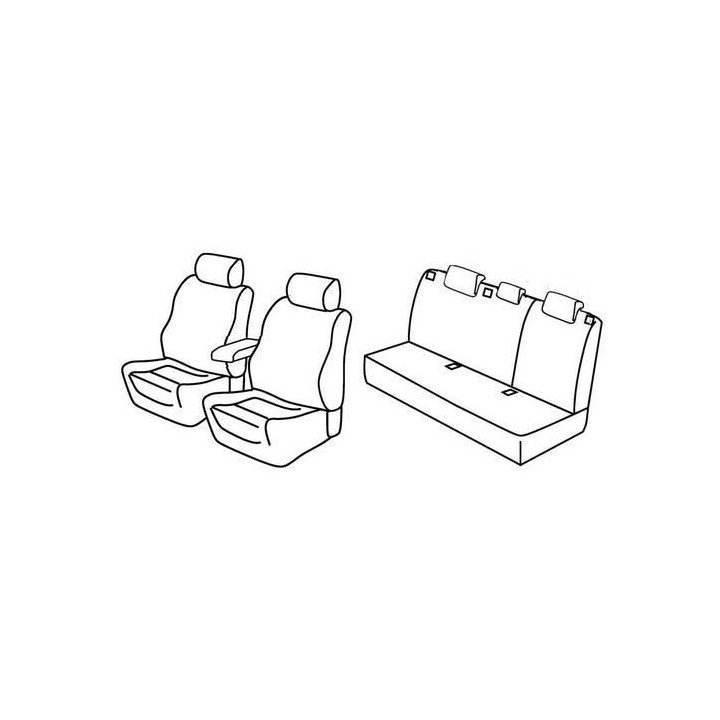 juego de fundas de tela a medida delanteras (2 asientos delanteros + reposabrazos + 2 reposacabezas) + (banqueta trasera: asiento + respaldo):