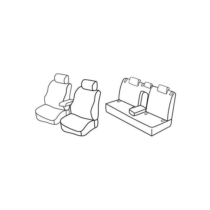juego de fundas de tela a medida delanteras (2 asientos delanteros + reposabrazos + 2 reposacabezas) + (banqueta trasera: asiento + respaldo):
