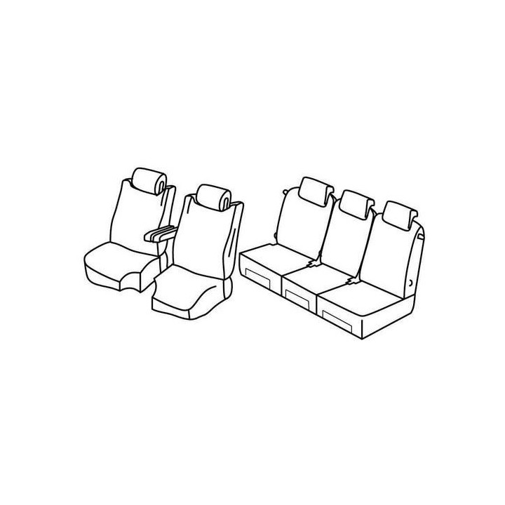 juego de fundas a medida en tela delanteras (2 asientos delanteros + reposabrazos + 2 reposacabezas) + (asiento trasero: base + respaldo + reposacabezas)