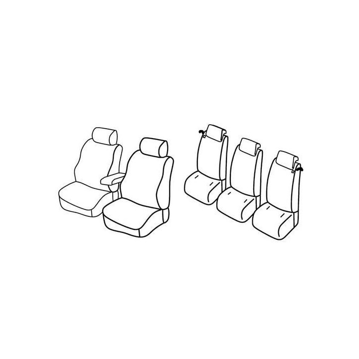 juego de fundas de tela a medida delanteras (2 asientos delanteros + reposabrazos + 2 reposacabezas) + (3 x asientos traseros: asiento + respaldo + reposacabezas)