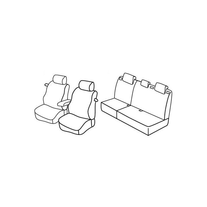 juego de fundas a medida en tela delantera (2 asientos delanteros + reposabrazos + 2 reposacabezas) + (asiento trasero: base + respaldo + reposacabezas)