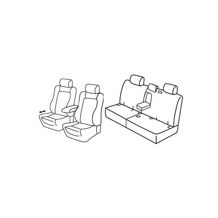 juego de fundas a medida de tela delantera (2 asientos delanteros + reposabrazos + 2 reposacabezas) + (asiento trasero: asiento + respaldo + reposacabezas)