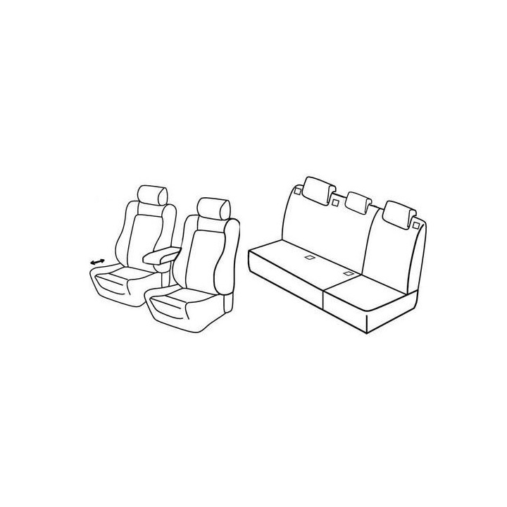 juego de fundas a medida de tela delantera (2 asientos delanteros + reposabrazos + 2 reposacabezas) + (asiento trasero: asiento + respaldo + reposacabezas)