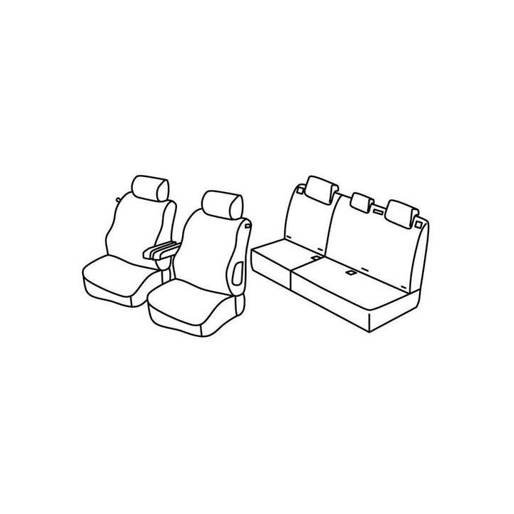 juego de fundas a medida de tela delantera (2 asientos delanteros + reposabrazos + 2 reposacabezas) + (asiento trasero: asiento + respaldo + reposacabezas)