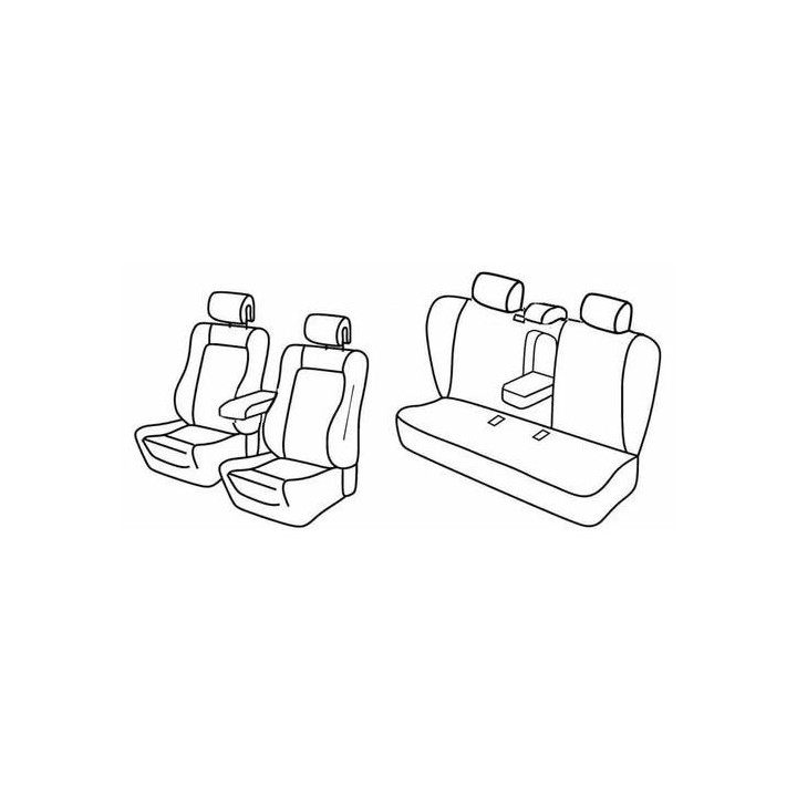 juego de fundas de tela a medida delanteras (2 asientos delanteros + reposabrazos + 2 reposacabezas) + (banqueta trasera: asiento + respaldo + reposacabezas)