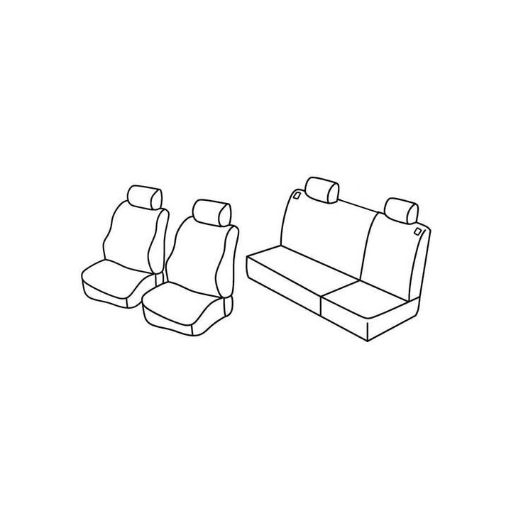 juego de fundas a medida de tela delanteras (2 asientos delanteros + reposabrazos + 2 reposacabezas) + (banqueta trasera: asiento + respaldo + reposacabezas)